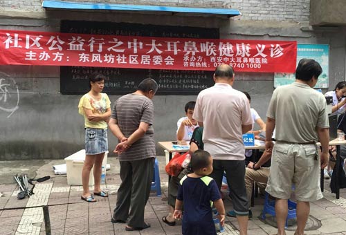 为提高社区广大群众对健康的认识,解答社区居民耳鼻喉方面的疾病疑惑,切实解决居民看病就医的实际问题。近日,西安中大耳鼻喉医院接到西安市新城区东元西路社区居委会、昌仁里社区居委会、东风坊社区居委会的邀请,接连在各社区举行了“社区公益行之中大耳鼻喉健康义诊”活动。